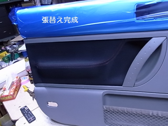 取っ手部分の部分張替です、この車両はビニールレザーと