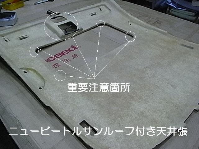 ビートルの天井は小さいながらフロント物入れ部分、サンルーフ