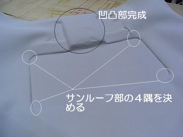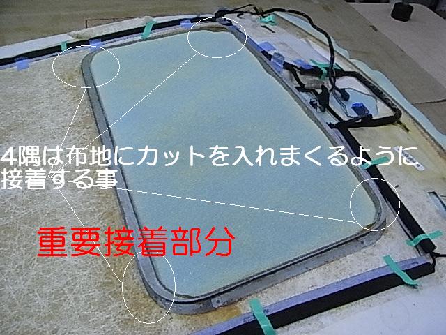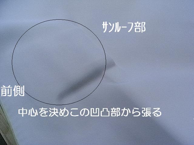 サンルーフ開口部が有る為布地をピンっと張らず開口部四隅