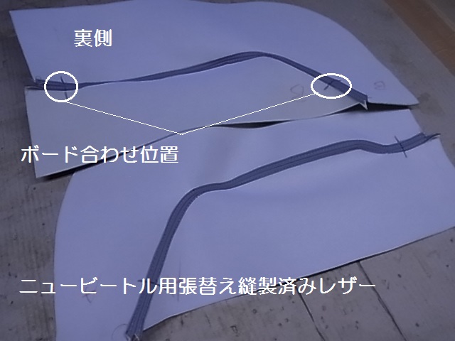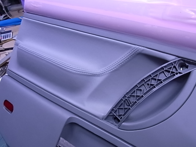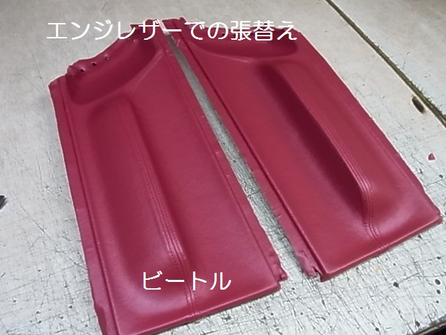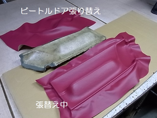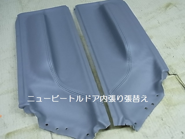 ニュービートルのドア張替え 縫製済みレザーでの張替え編