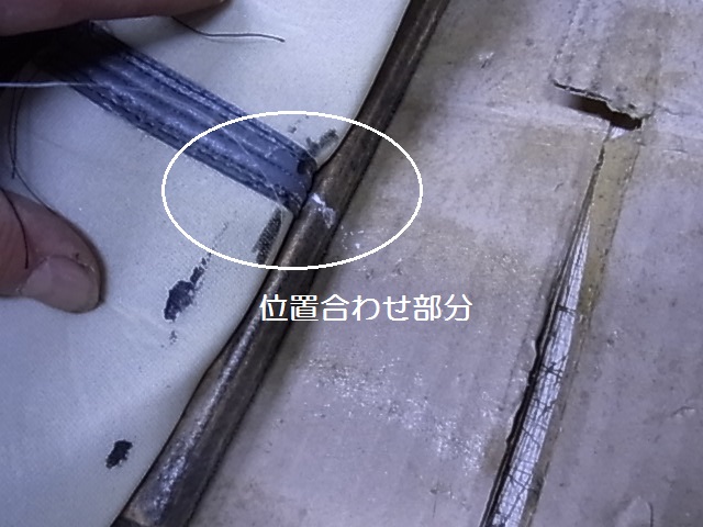 縫い合わせ位置をdボードに合わせて張り込んで行くと前側と