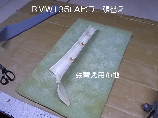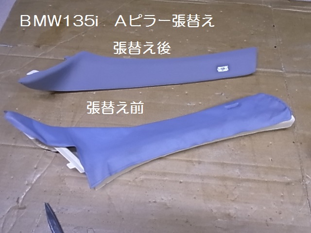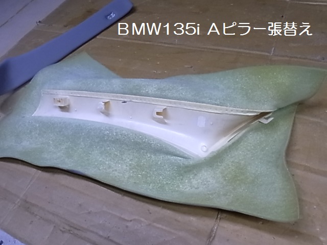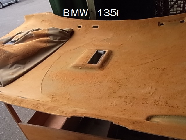 BMW 1シリーズの天井張替え参考例です。 BMW 135i ピラー張替え