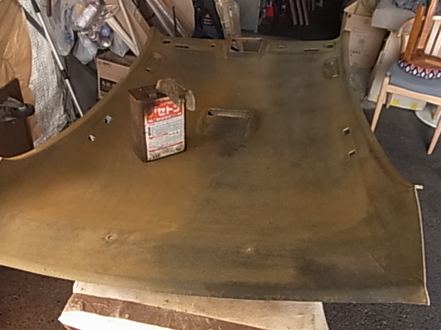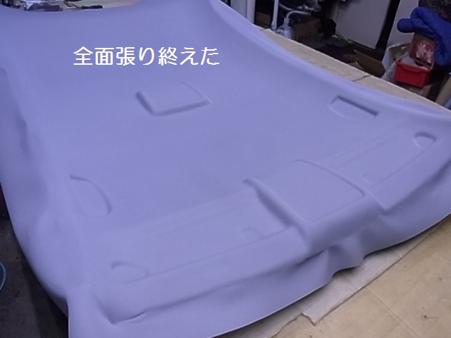 アセトンを十分乾燥させたら、天井と、張り替える布地に