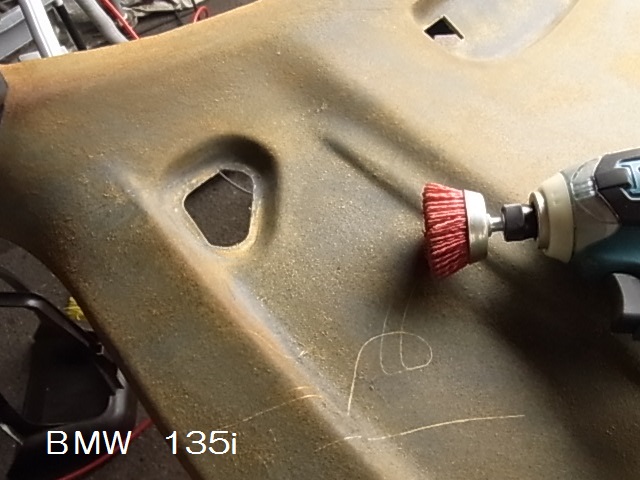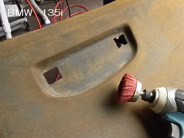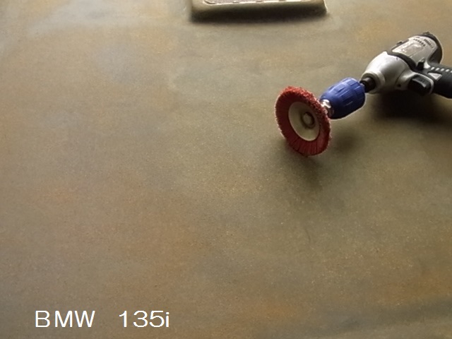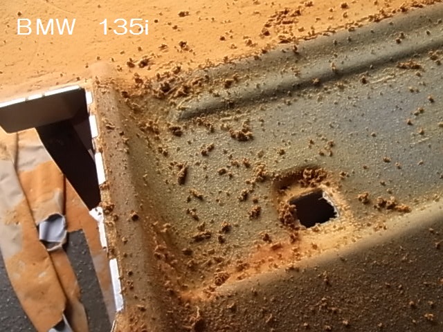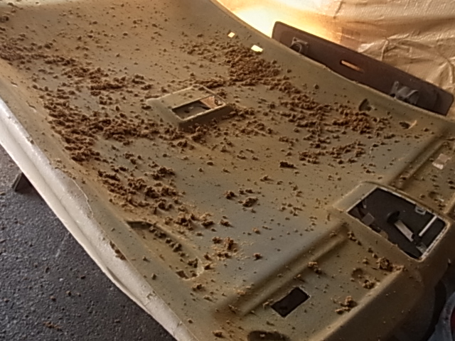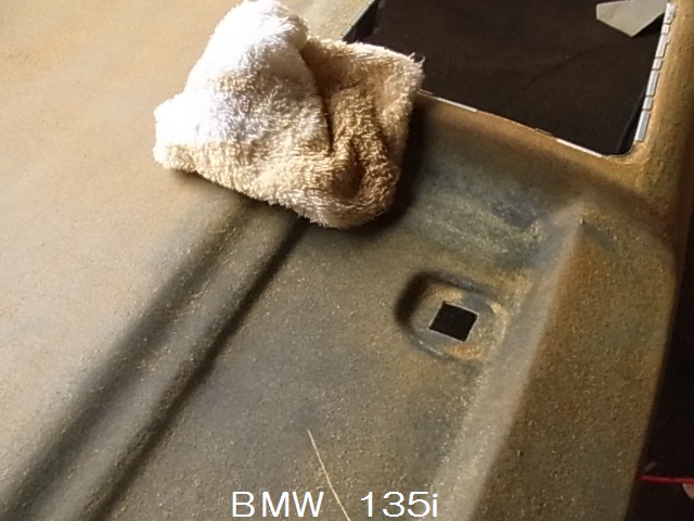 ブラシなどで、きれいに削り落としていきます、BMWの天井は強く削りすぎると、ボード本体がキズ付きますので注意。