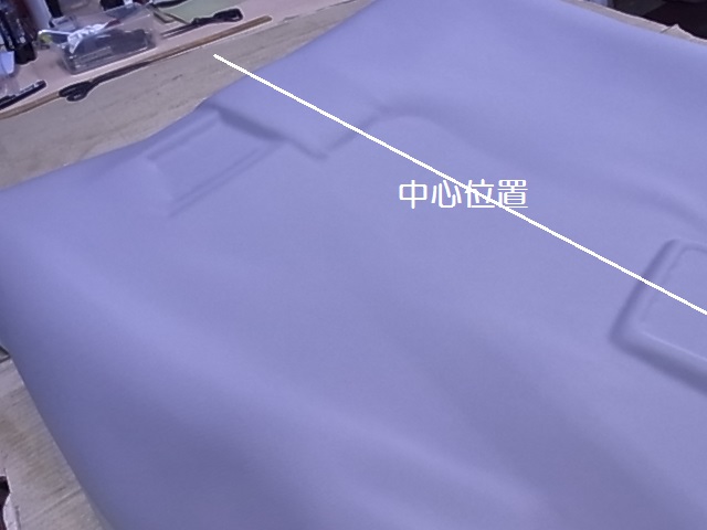 この天井は真ん中に大きな凹凸が有るので、最初にこの部分を接着してから、前後、左右に分け張っていきます