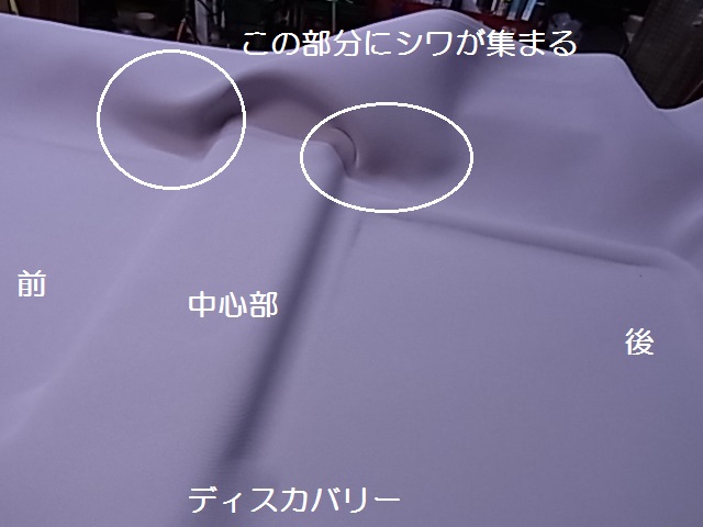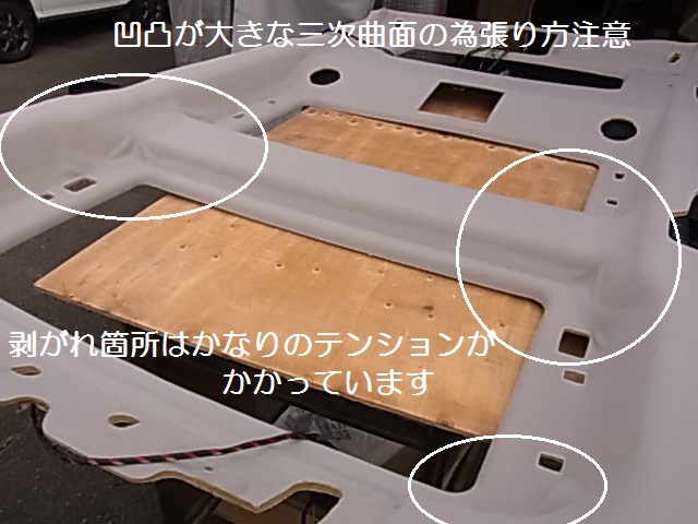 この天井はサンルーフ部分の凹凸が深い為表面の布地