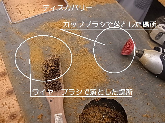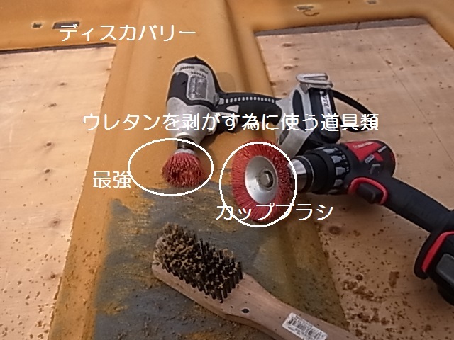 しっかりと残っているウレタンは、ワイヤーブラシなどでは、なかなか取れませんので、工具を使用して削り取ります。
