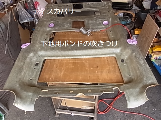 アセトンを乾燥させたら、下地用ボンドを全体に吹きますこのぐらいの大きさになると、缶スプレーでは無理、無駄があるので、エア式のスプレーガンでのボンド使用をお勧め致します