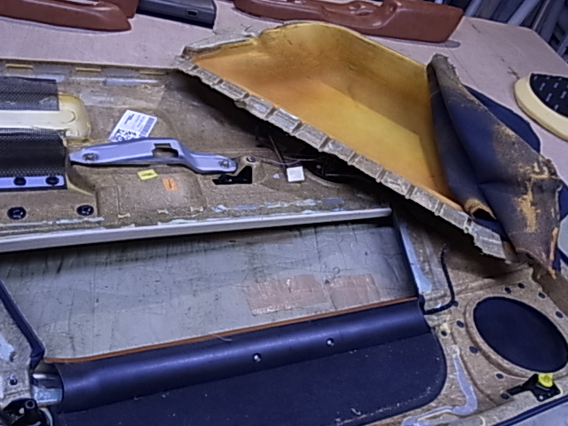 表面の布地はきれいにはがれますが、純正のウレタンはほとんど残ります