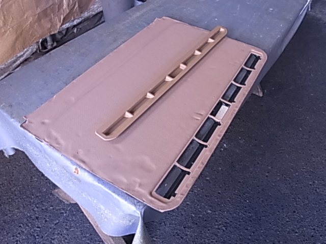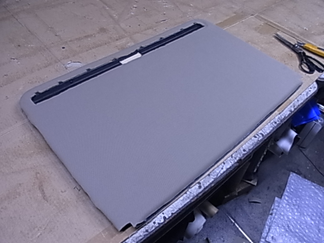 表面を張り終えたらルーフラインニングを裏返しにして