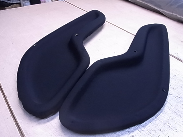張替えに使用する布地の裏にも一度ボンドを塗り乾かします、内張りボードと、布地裏に再度ボンドを塗りベタベタがなくなるまで乾かし、張り付けて行きます