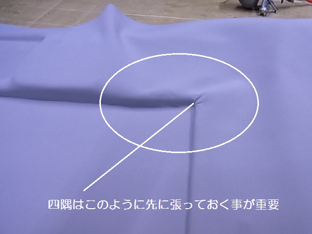 サンルーフ部分の四隅を先に張り仕上げると、画像の