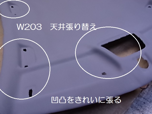 ■ベンツW203 Cクラスの天井張替 参考例 サンルーフ付き