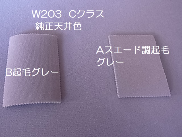 Cクラス張替に使用した布地はAスエード調起毛グレー布地を使用、肌さわりの良い高級布地伸びも抜群
