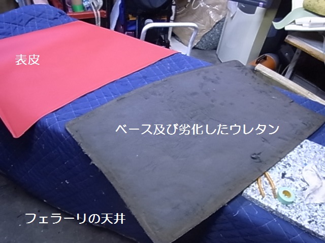 ■フェラーリの天井剥がれの修理パターン 参考例 ① 内部ウレタンが劣化している場合
