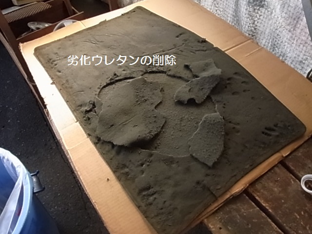 表皮とボードの間のウレタンが完全に劣化してしまった