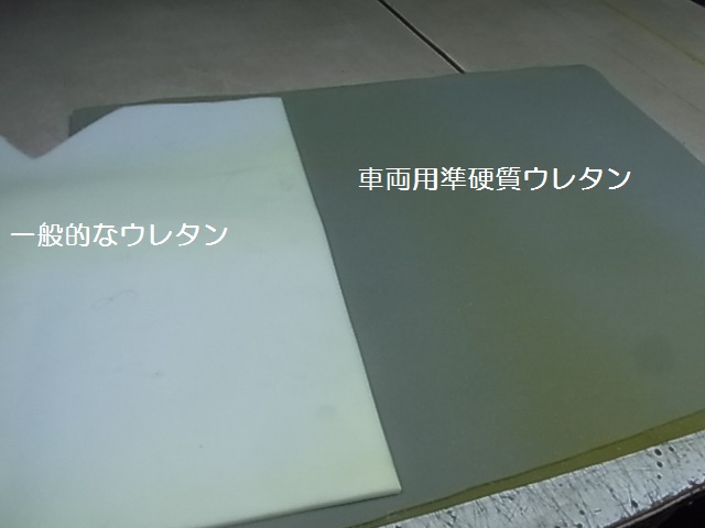 代替で使用するウレタンは準硬質の自動車用難燃ウレタンです、硬さが程よくあり押してつぶれて跡が付く事を防止します