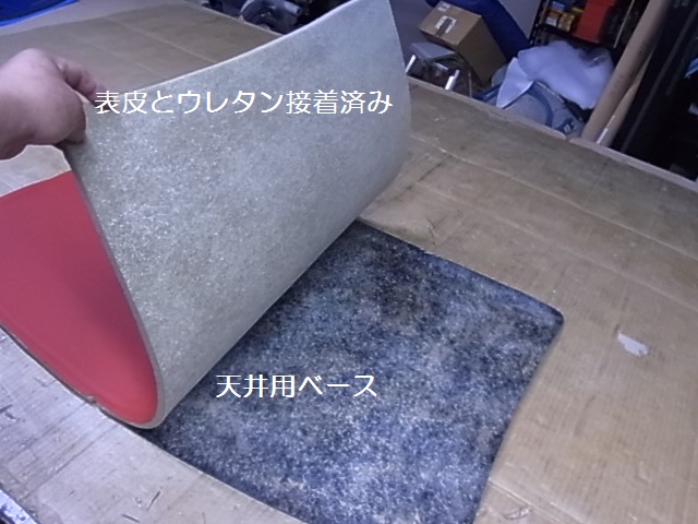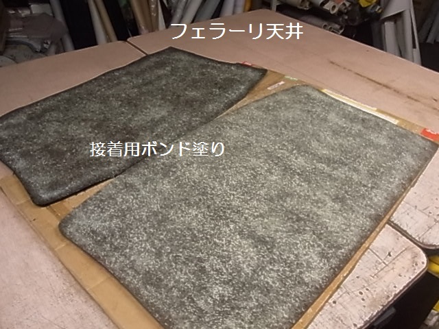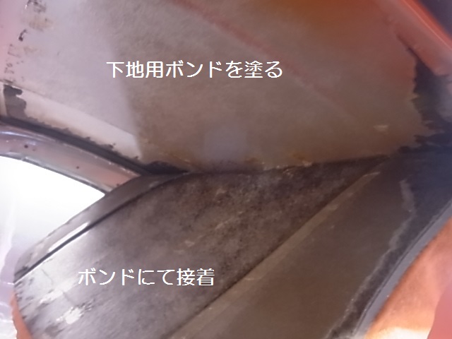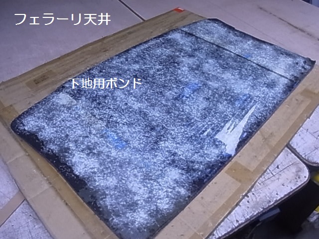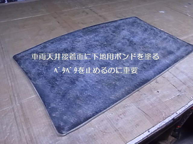 天井が浮き始めた状態の場合車両から剝さず、車両内部で下塗りボンドを塗り完成させます