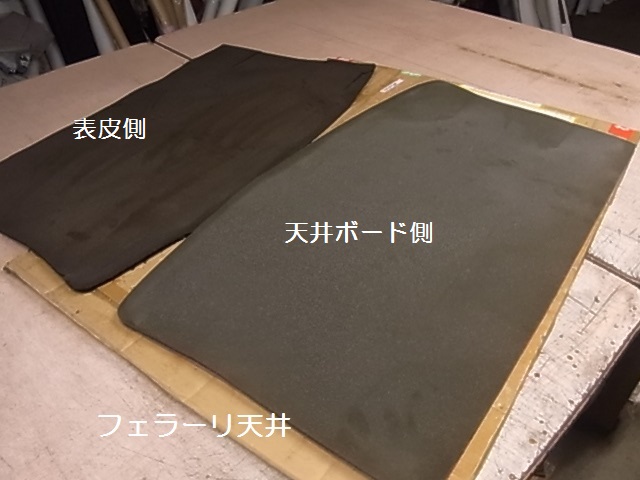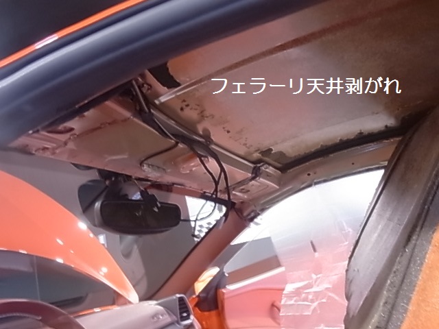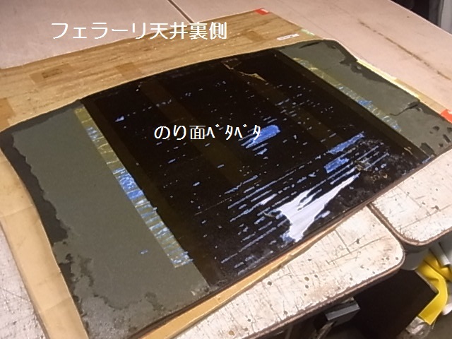 フェラーリの天井はボンドで接着しているのでは無く、両面テープと大きな接着テープのような物で固定しているのでテープの劣化により剥がれが見られます