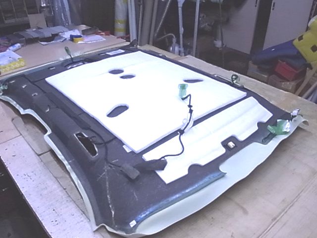 この天井は純正の布地を張っている、ボンド自体が厚塗りの為