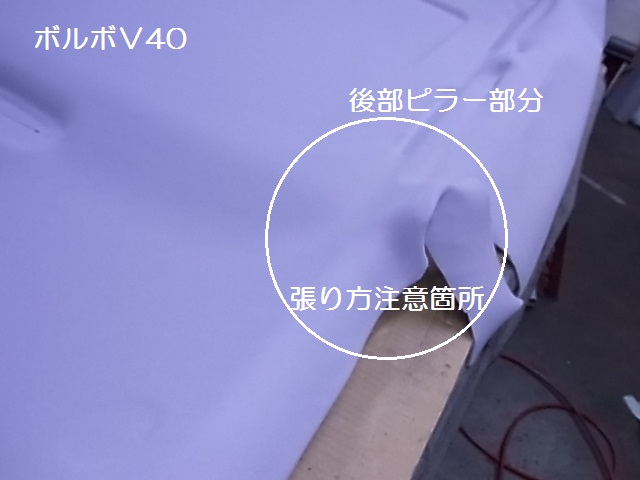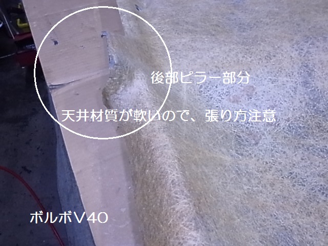 この天井の材質は特にやわかいので、特にBピラー、Cピラー部分の張り方は要注意です、力をかけ過ぎると形が潰れますのでご注意下さい。