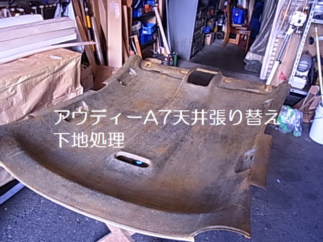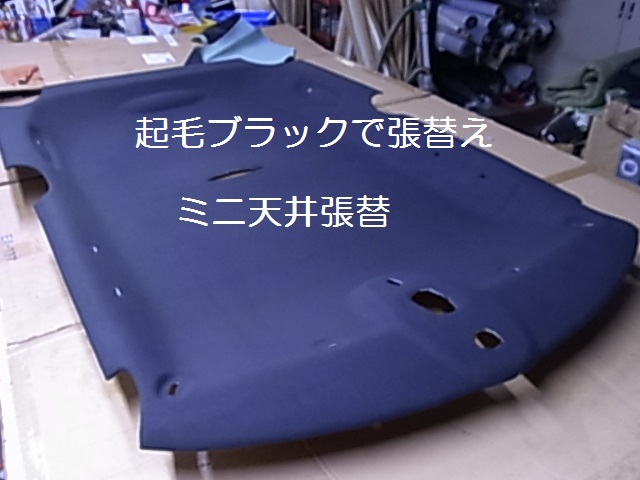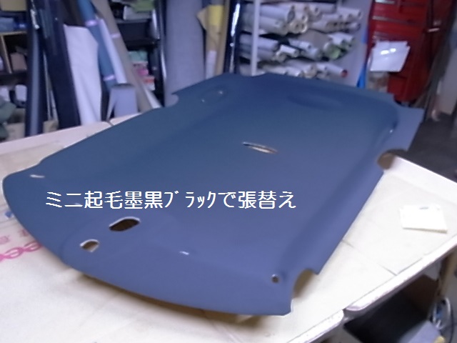 A4 RSの天井張替 表面起毛タイプのブラックで張替え
