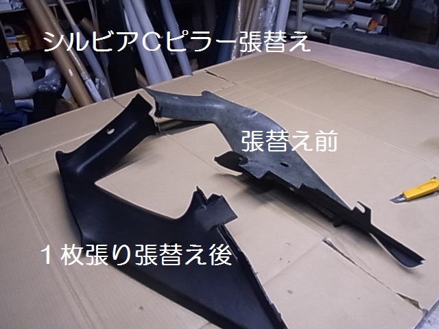 シルビアの変色したPP製ピラーを合皮レザーで張替え