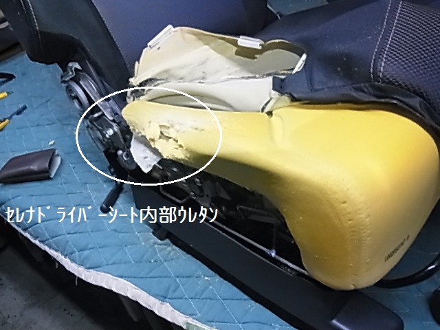 ウレタンがへたって破れる為、内部ウレタンの補充修正は