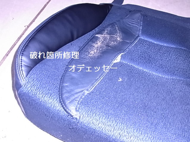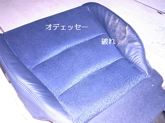 オデェッセードライバーシート座面右側サポート部分のヘタリ破れ