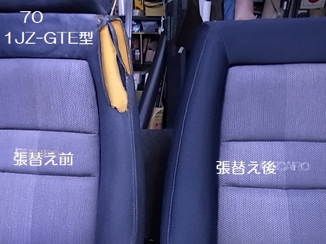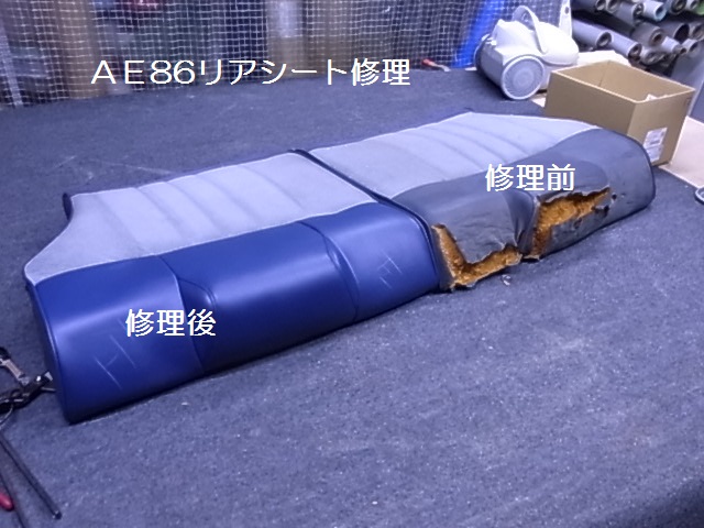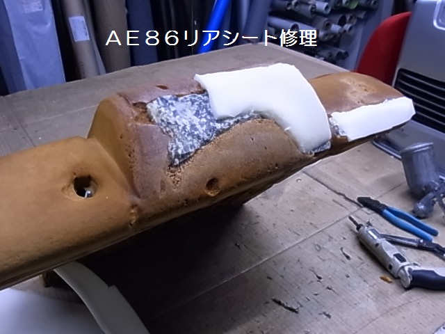 AE86リアシート背の表皮、内部ウレタンの劣化破れの為修理