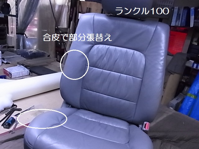 サーフドライバーシート座面本革部破れの為、合皮にて