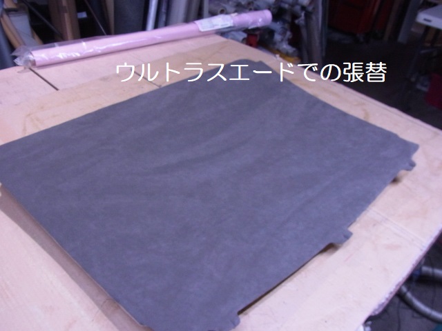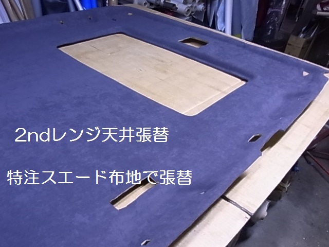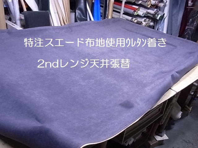 2ndレンジの天井張替 ダークグレーの特注スエード布地での天井張替