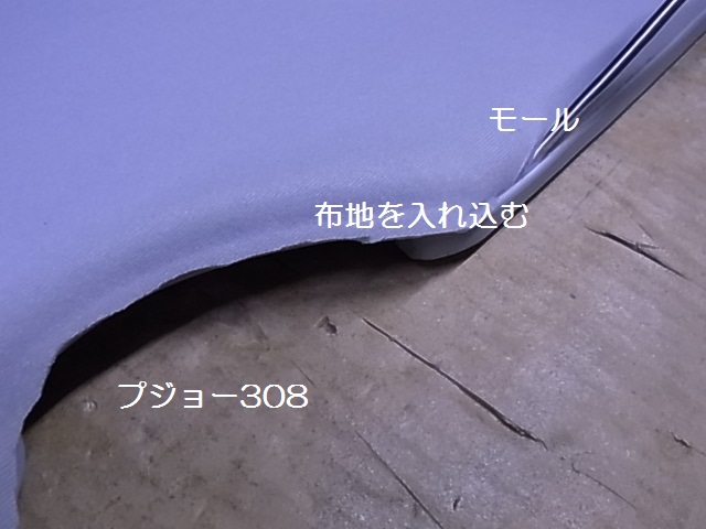 モールに布地を入れ込んだら、浮いている場所が無いかの確認をしながら、ヒートガンなどで暖めながら手で圧着して終了です