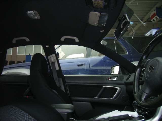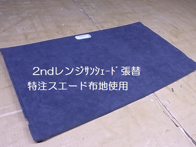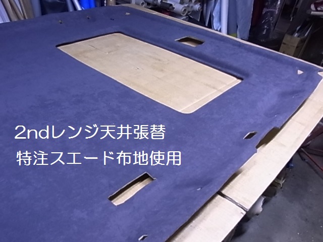 2ndレンジの天井張替、特注のスエード調布地 ダークグレーで張替