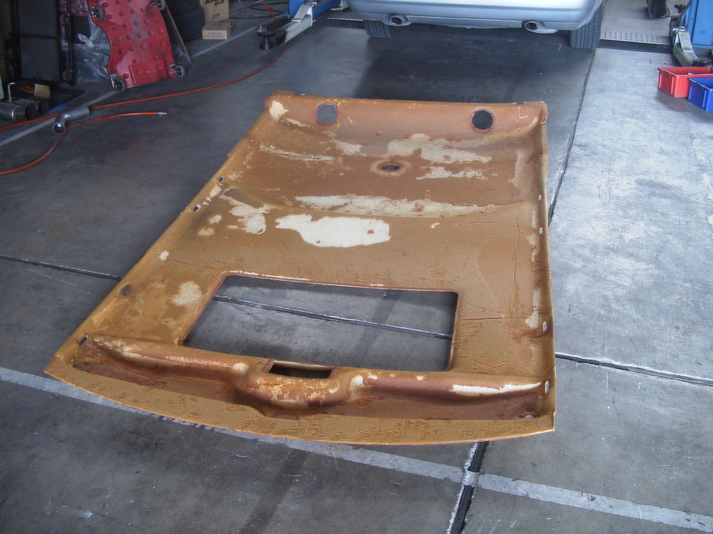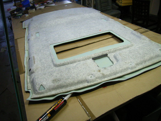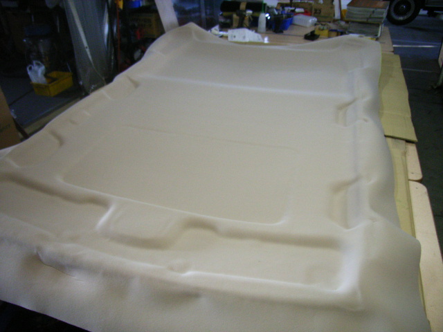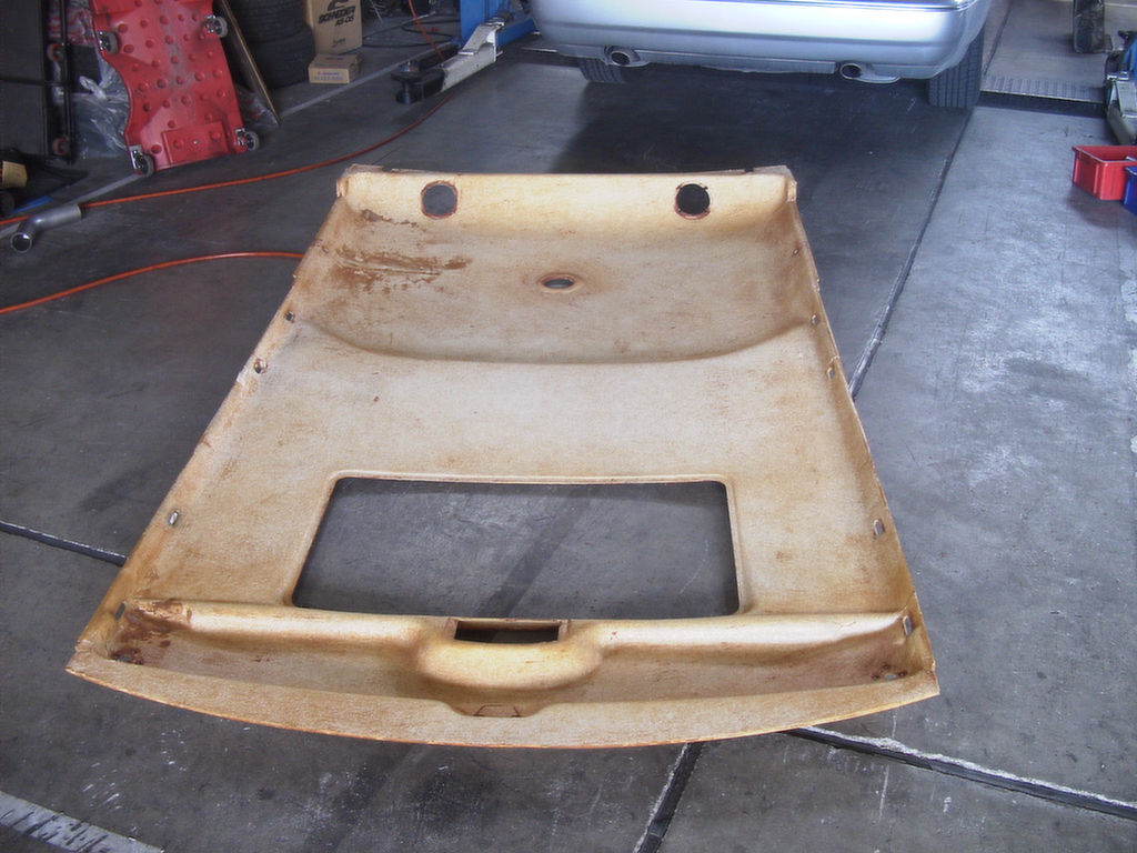 純正の天井布地を剥がすと、ボロボロになったウレタンが残ります。