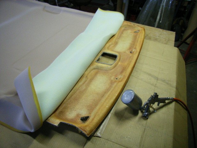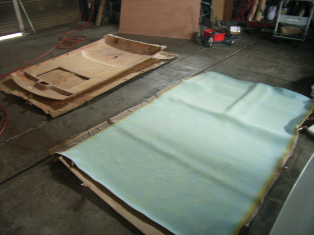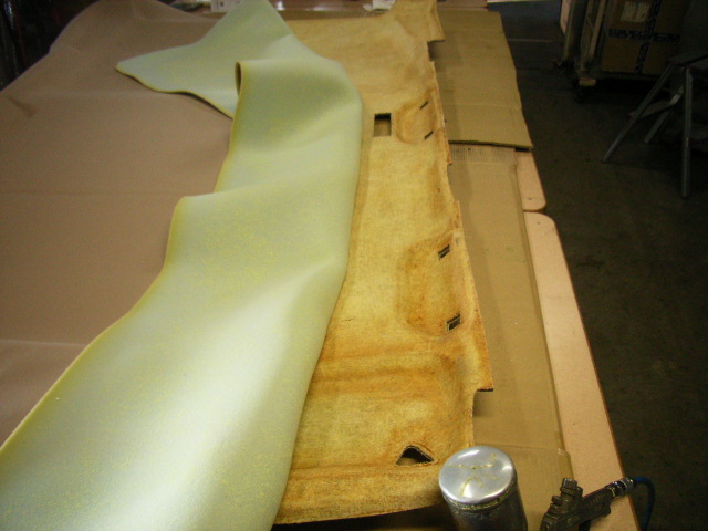 ボンドを再スプレーします、再スプレーする事により、強力な接着力となりますので少しずつ圧着して張っていきます。