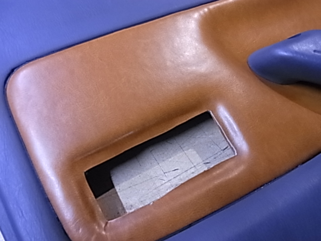レザーは凹凸に合わせ張って行かないと後々浮きが出る場合があるので注意