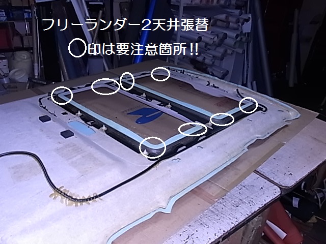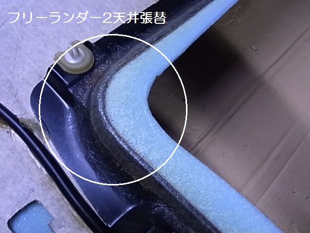 フリーランダー2のサンルーフ車の天井張替はサンルーフ部分の角の仕上げに注意