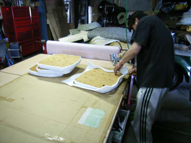 ウレタンはすべてボンドを使用して張り付けます。DIYの場合は刷毛ぬりよりもスプレーボンドをお勧め致します。(10ミリウレタン50センチx50センチ約500円、スプレーボンド1本約1700円)