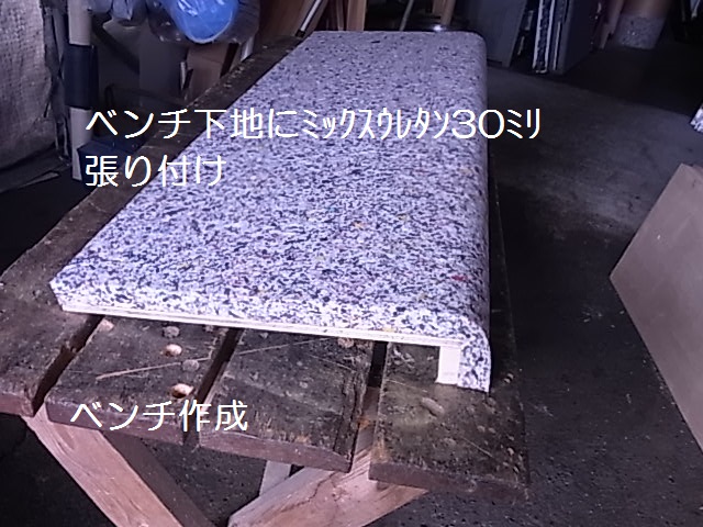 木製ベンチの椅子に乗せるベンチを作成する為に下地を最初に作成します。