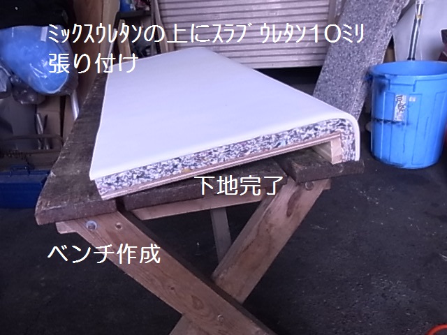 ミックスの上に軟質のスラブウレタンを乗せ接着したら下地は完成です。