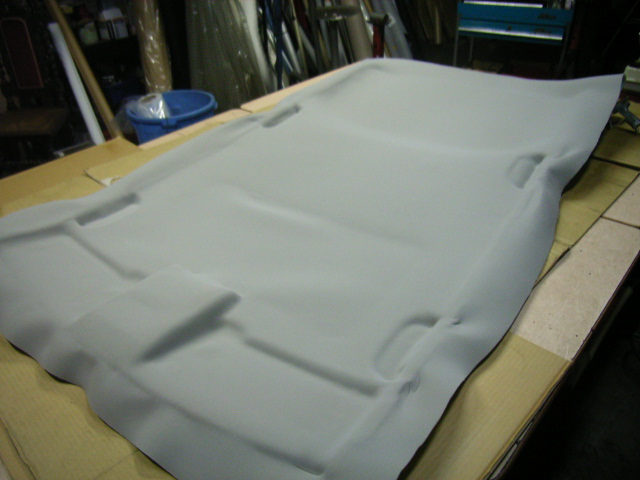 天井張り替え用の布地裏に約3ミリのウレタが張り付けてありスプレーボンドを使用し張り付けます。
