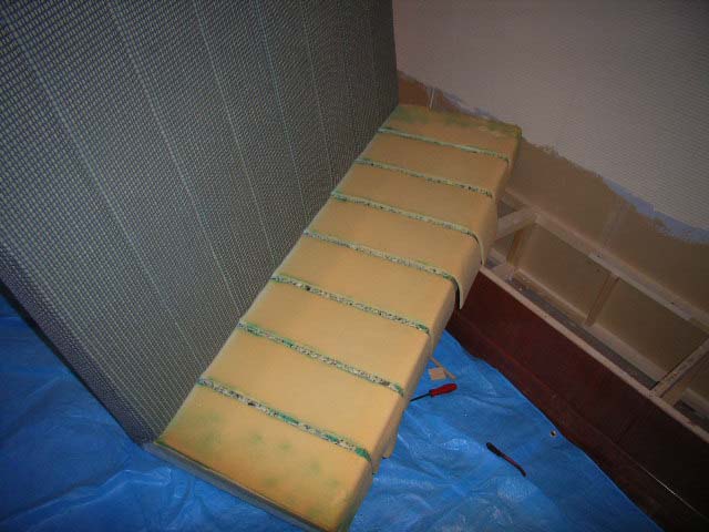 今回は座席のみをばらして布地から合成レザーに張替えいたします。まずは張ってある布地をすべて取り外します。