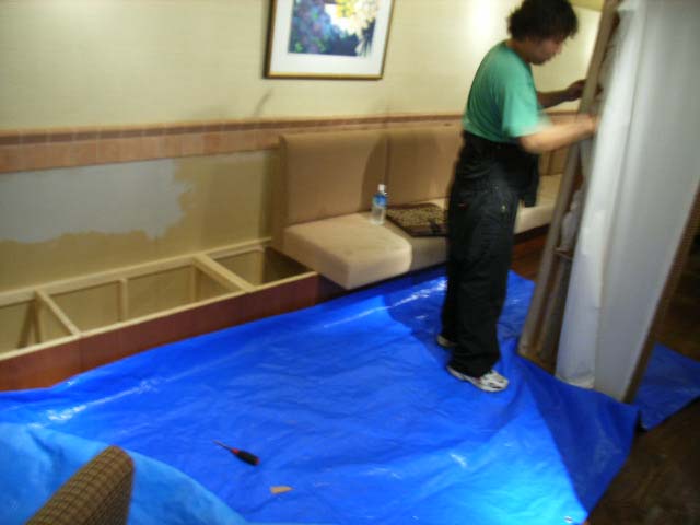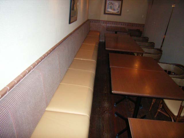 布地から合成レザーに変身です。お客様も気持ちよくご利用していただける座席になりました。