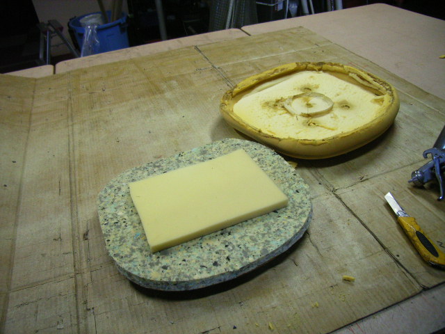 ヘたったウレタンを固めのウレタンで補強して元の状態に近づけます